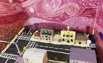 A dull, grimy city filled with the colors of the starry night as an immersive installation prototype.